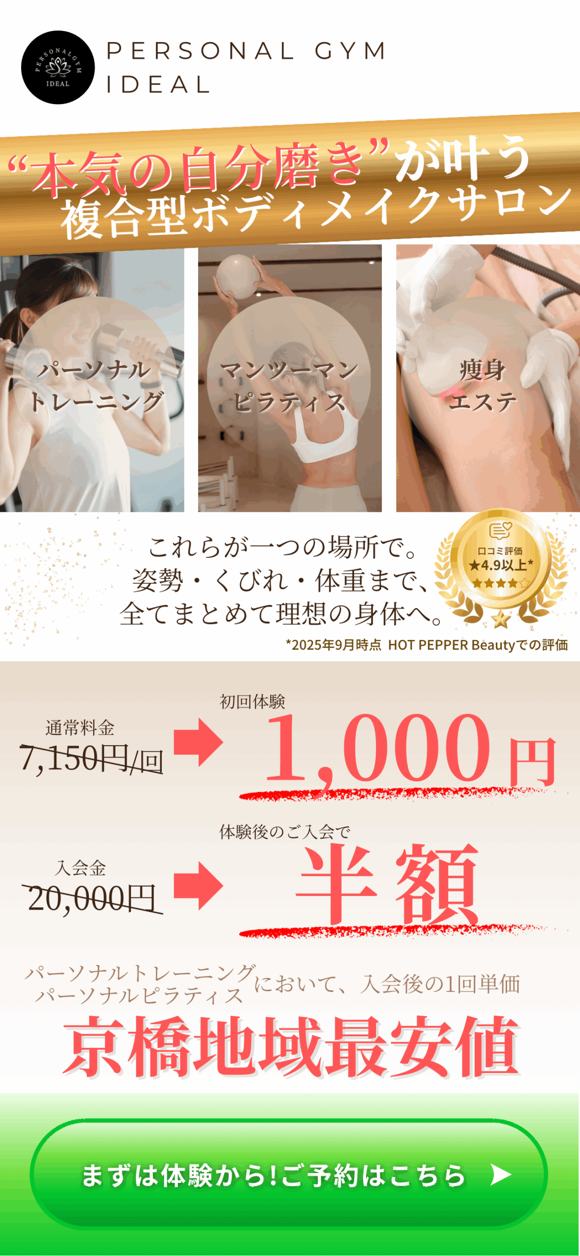 ・くびれ・美脚・美尻など目的別メニュー