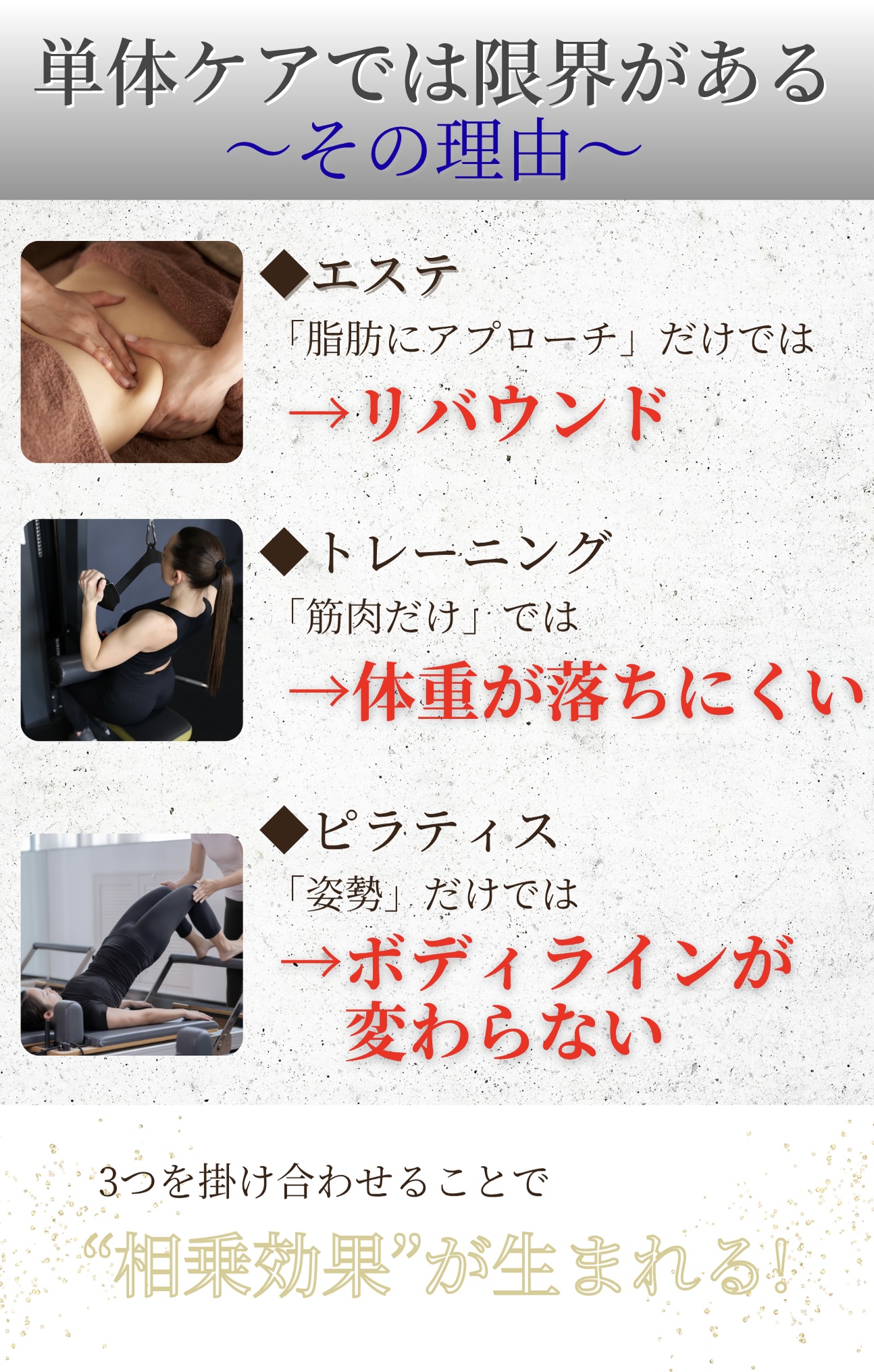 エステと運動を一緒に受けられるので効率がよく、体重だけでなく姿勢まで変わって驚いています。